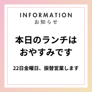 予定してくださっていた方、申し訳ございません。 振替で今週金曜日の22日はランチ営業いたします。 よろしくお願いいたします。 - 冷やしラッサム始めました