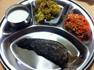 今回はマサラを詰めた茄子をゴマ油で炒め煮しました。