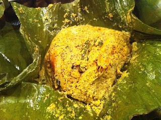 イエローマスタードが効いた一品でした。しかもバナナの葉に包まれて蒸し焼き♪