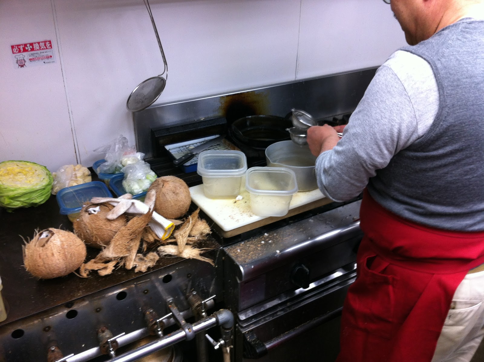 生ココナッツを割り、捌き、調理する。