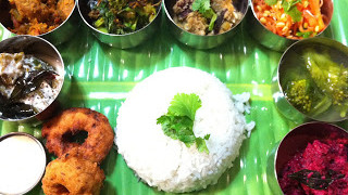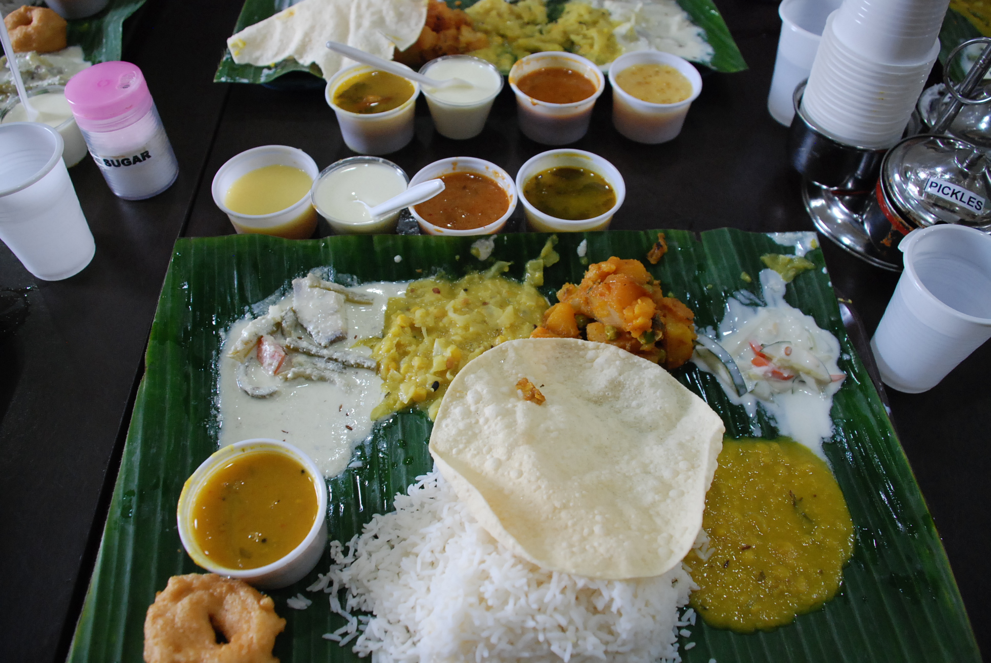 サンバル、ラッサム、コロンブ、タイール、クートゥ、ポリヤル、ライタ、パヤサム、ワダとピクルスです。