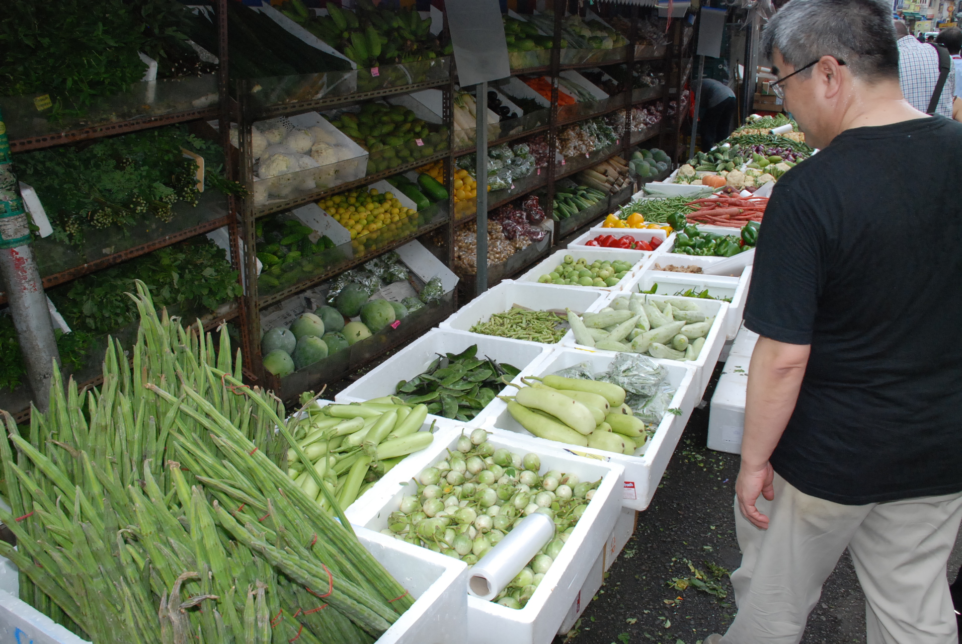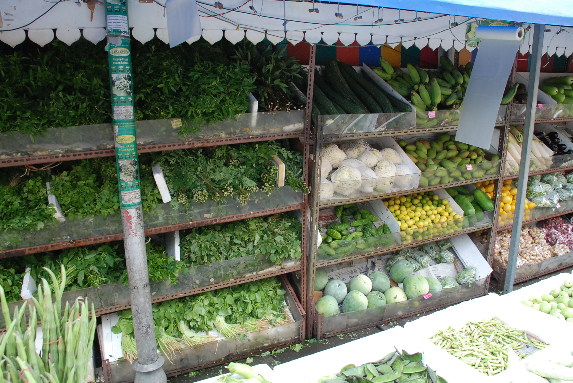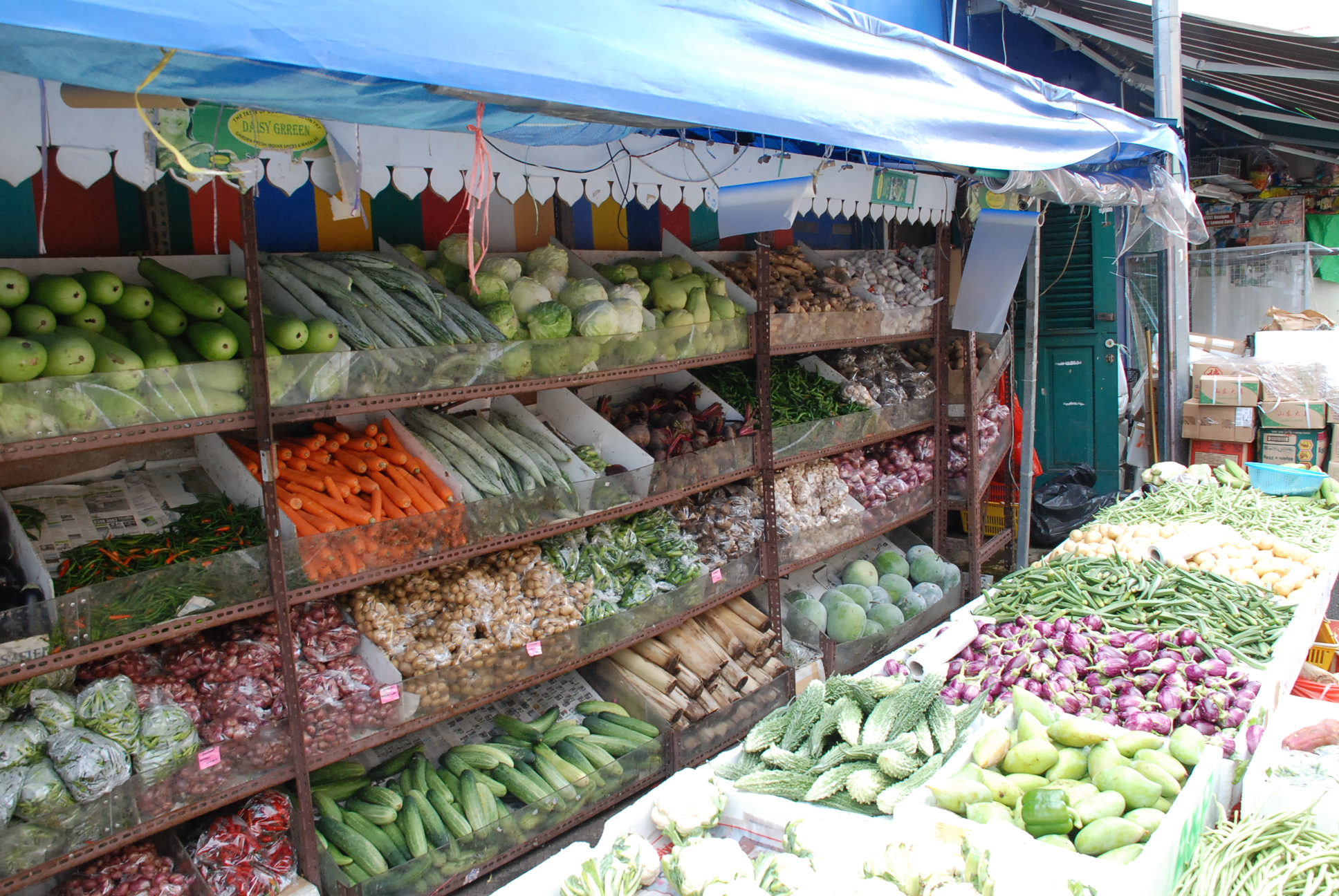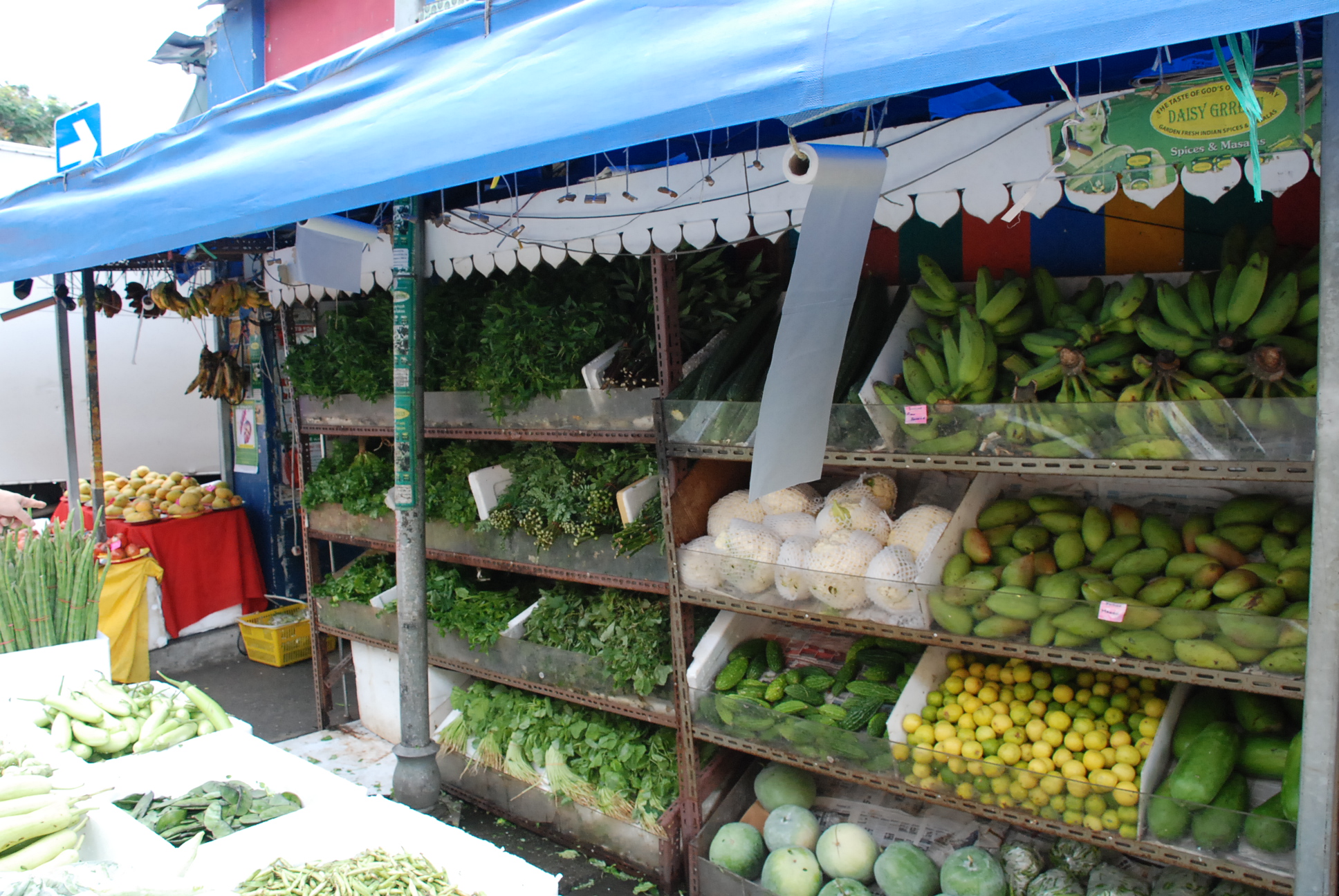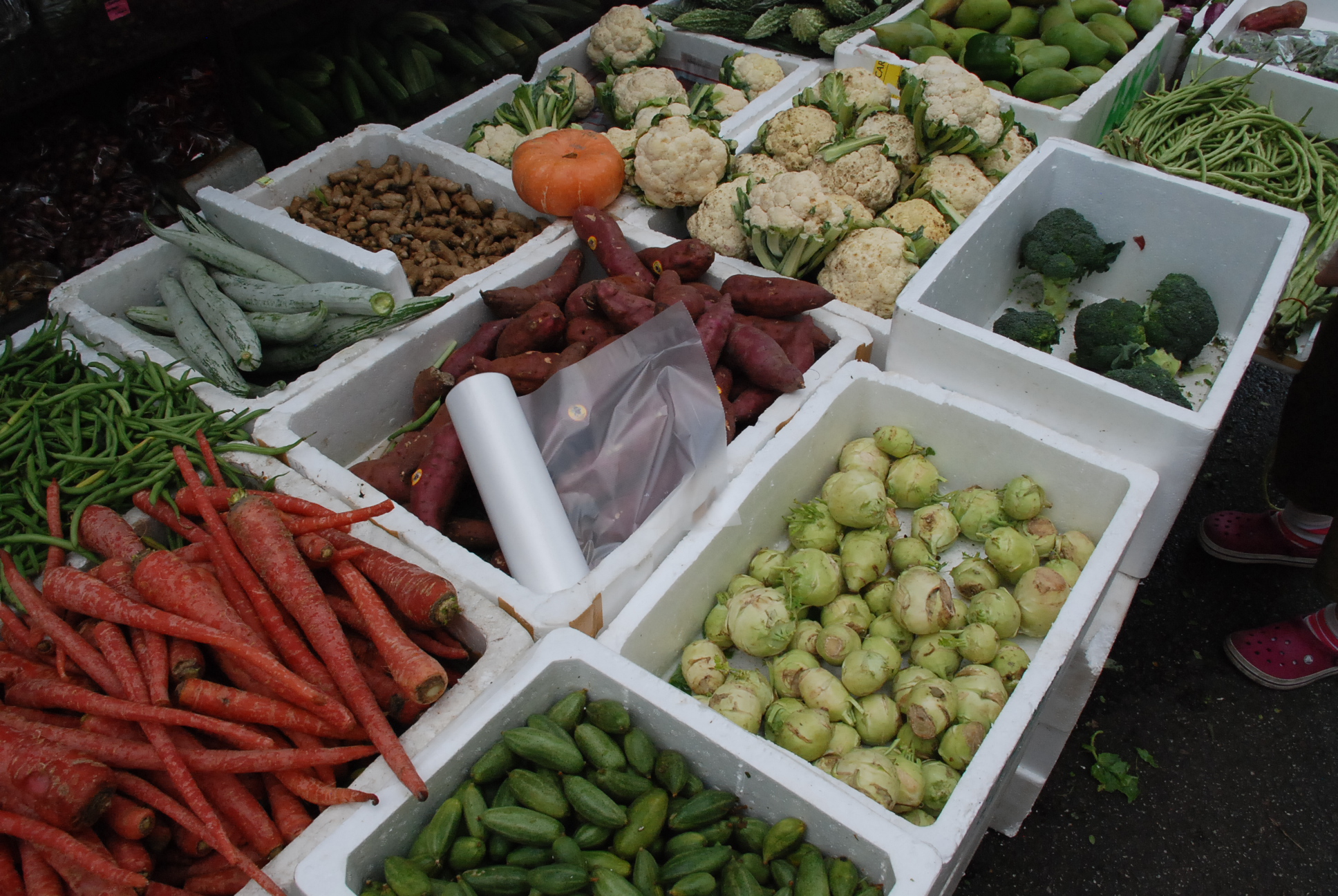ドラムスティックや、丸い緑色の茄子、玉ねぎやビーツ等々いろんなもの売っています。