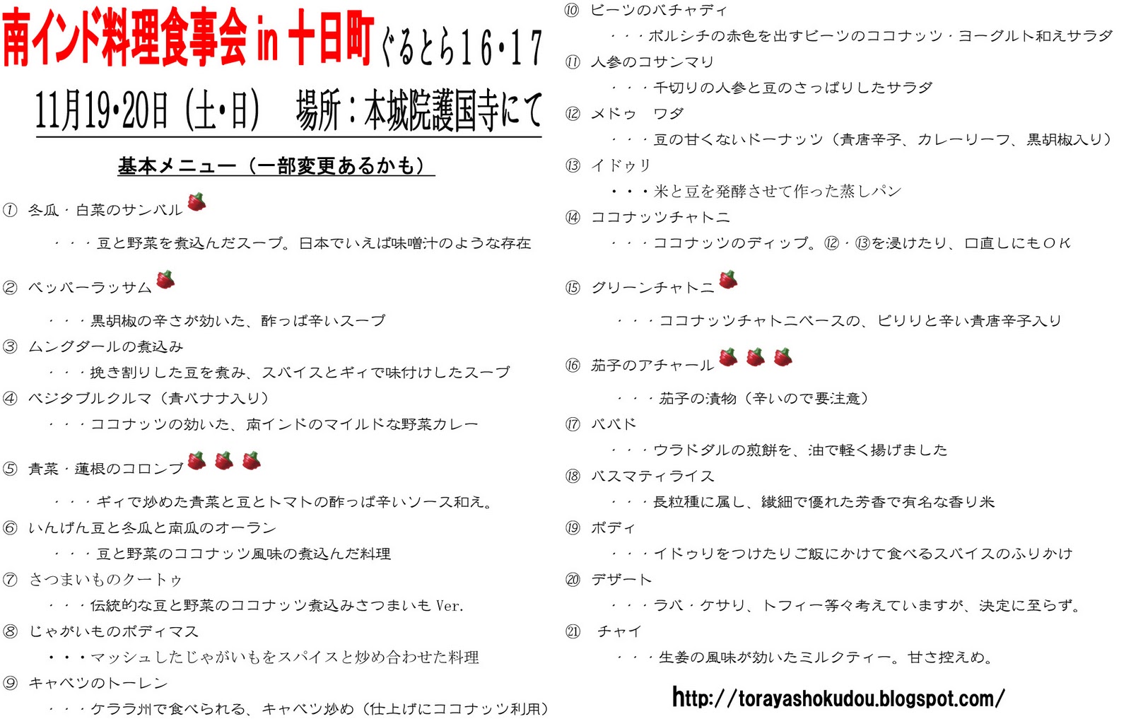 11月19日・20日(土・日)は、新潟県十日町市にて南インド料理食事会を無事終了しました。