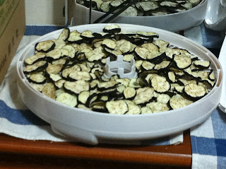 まずは、茄子をすべて輪切りにして乾燥機にかける。