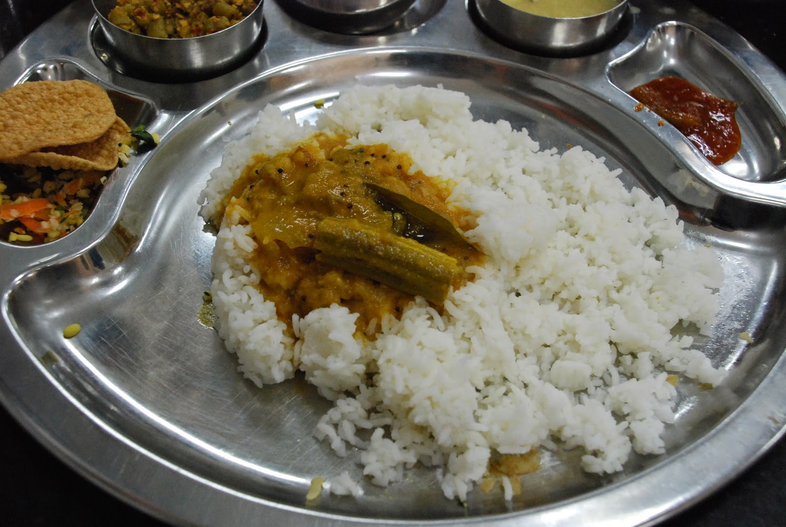 ライスを広げるためカトゥリをずらしました。そしてライス、サンバルをかけて・・・