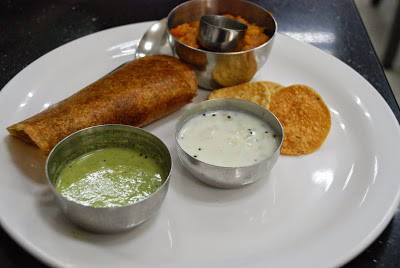 この二つのメニューの違いは、下の写真の(Masala Dosa,Chutney,Papad,Bisebelebath)が付いてるか付いてないか。