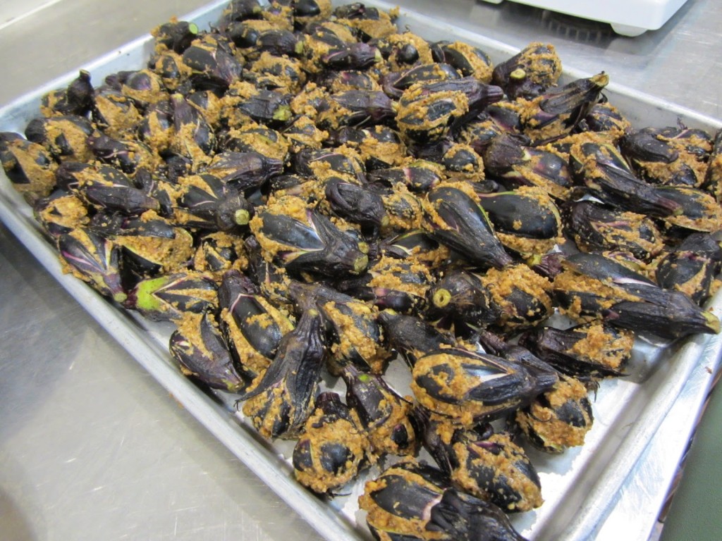 | 小茄子にマサラを詰めた写真 |