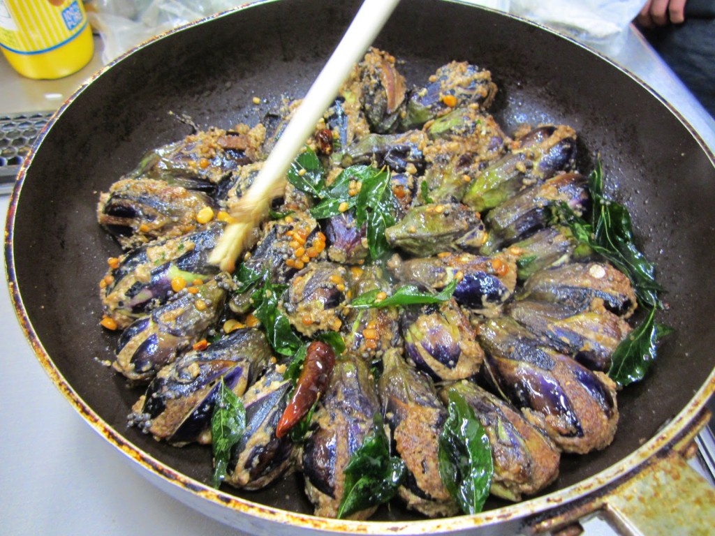 ⑥Ennai kathirikkai poriyal 茄子のマサラ詰めポリヤル。小茄子を見つけることが出来ましたので、一人3個は提供できました。