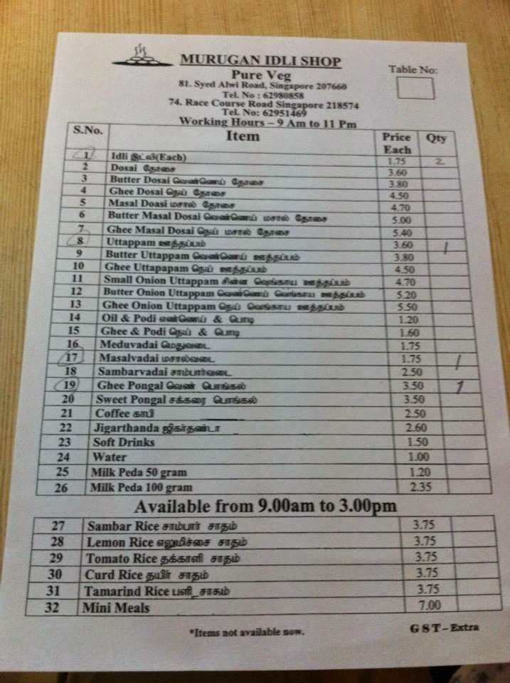 でも、折角だから(シンガポールに来ているのだから)歩いて数分のMurugan Idli Shopへ。