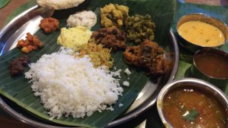 運ばれてきました、美味しそうなベジ・ミールスです。メニューには、ノンベジとスペシャルもありましたが、ミールスはベジ好きな私。