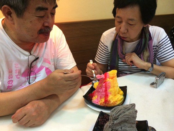 N-jiriご夫妻は、マンゴーとイチゴのmixかき氷。