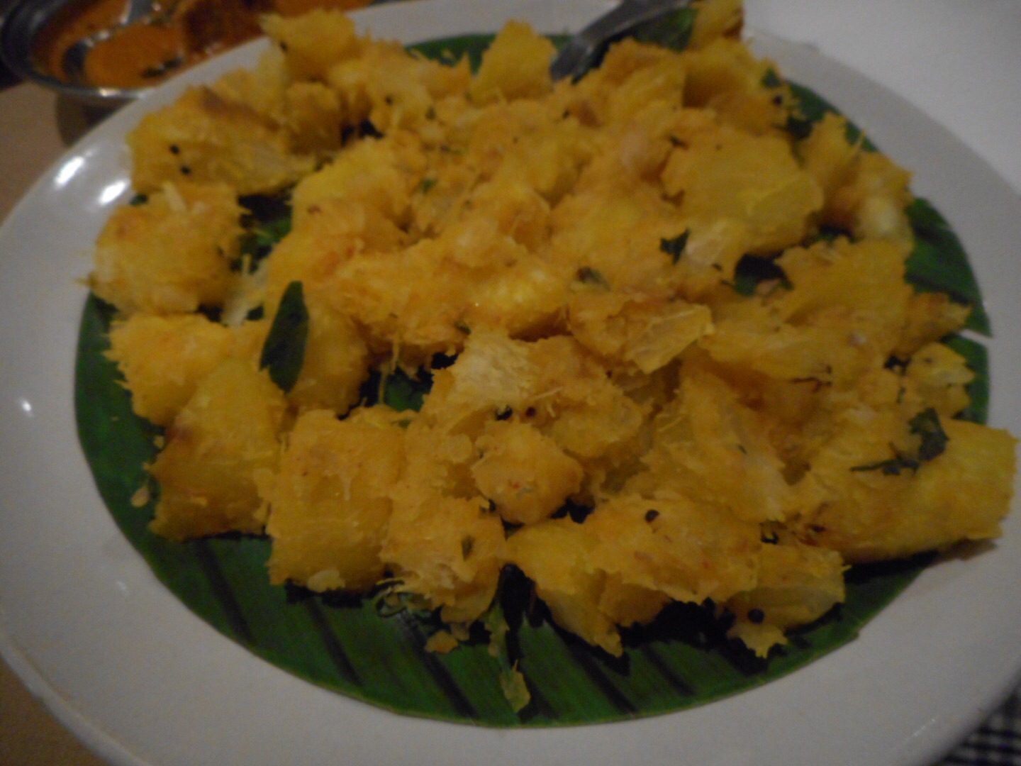 Meen Vattichathu(ケララ・スパイシーフィッシュカレー) と Kappa (tapioca炒め)のセット。