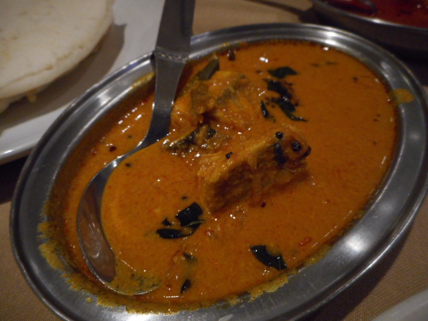 Alappuzha Meen Curry(アレッピーフィッシュカレー) と Thattu Dosa のセット。
