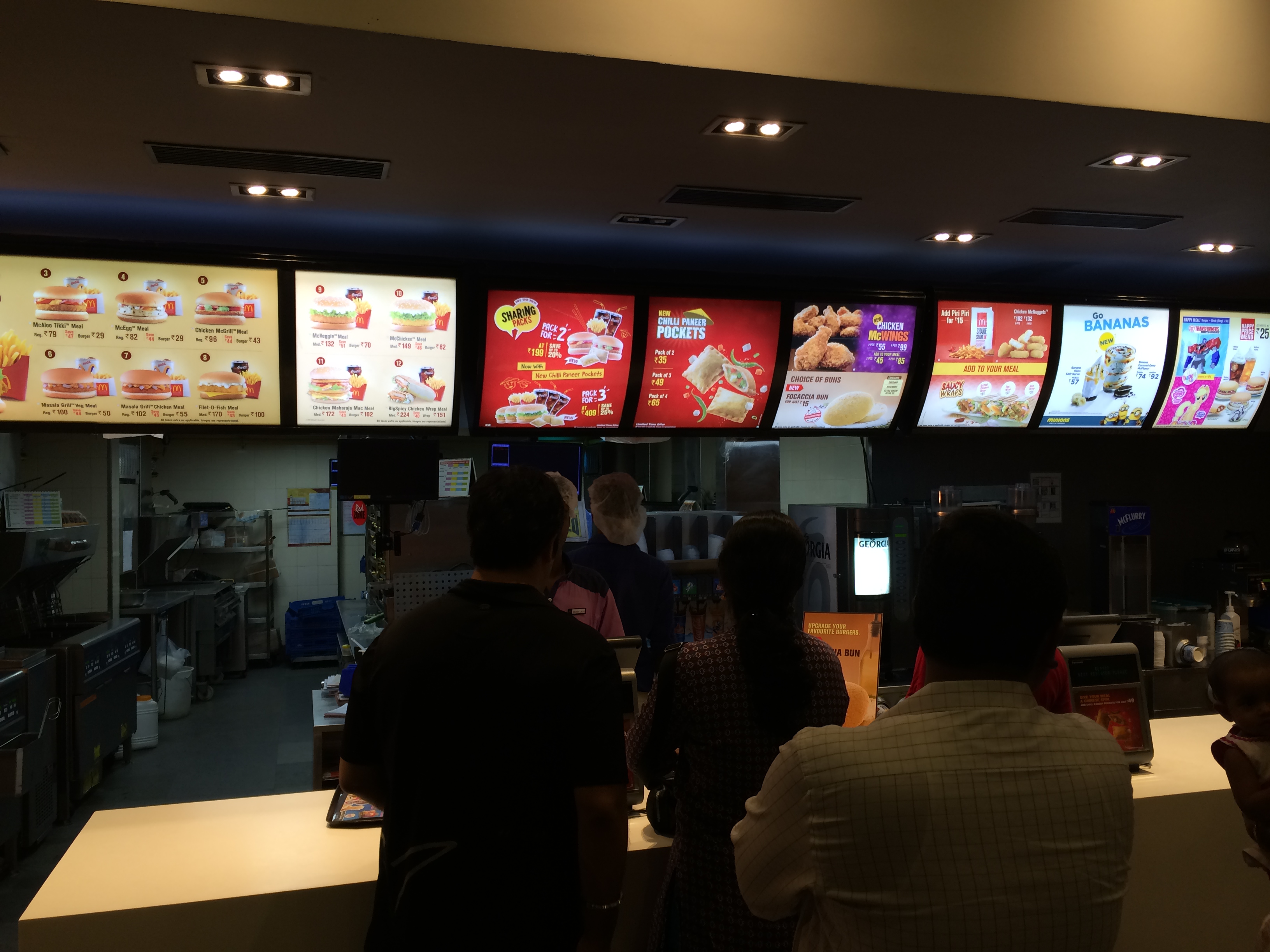 男女ペアーが、上手に歌ってます。しばし観覧し、午前中ちょっと覗き込んだPai Dosa近くにあったマクドナルドのハンバーガーが、晩御飯となりました。