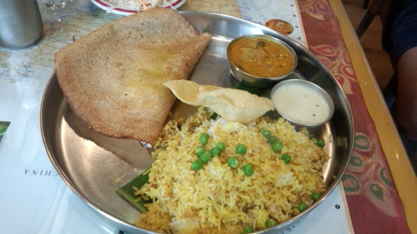 青色のカレーかと思いきや青色ライスに烏賊の塩辛色のカレールー。