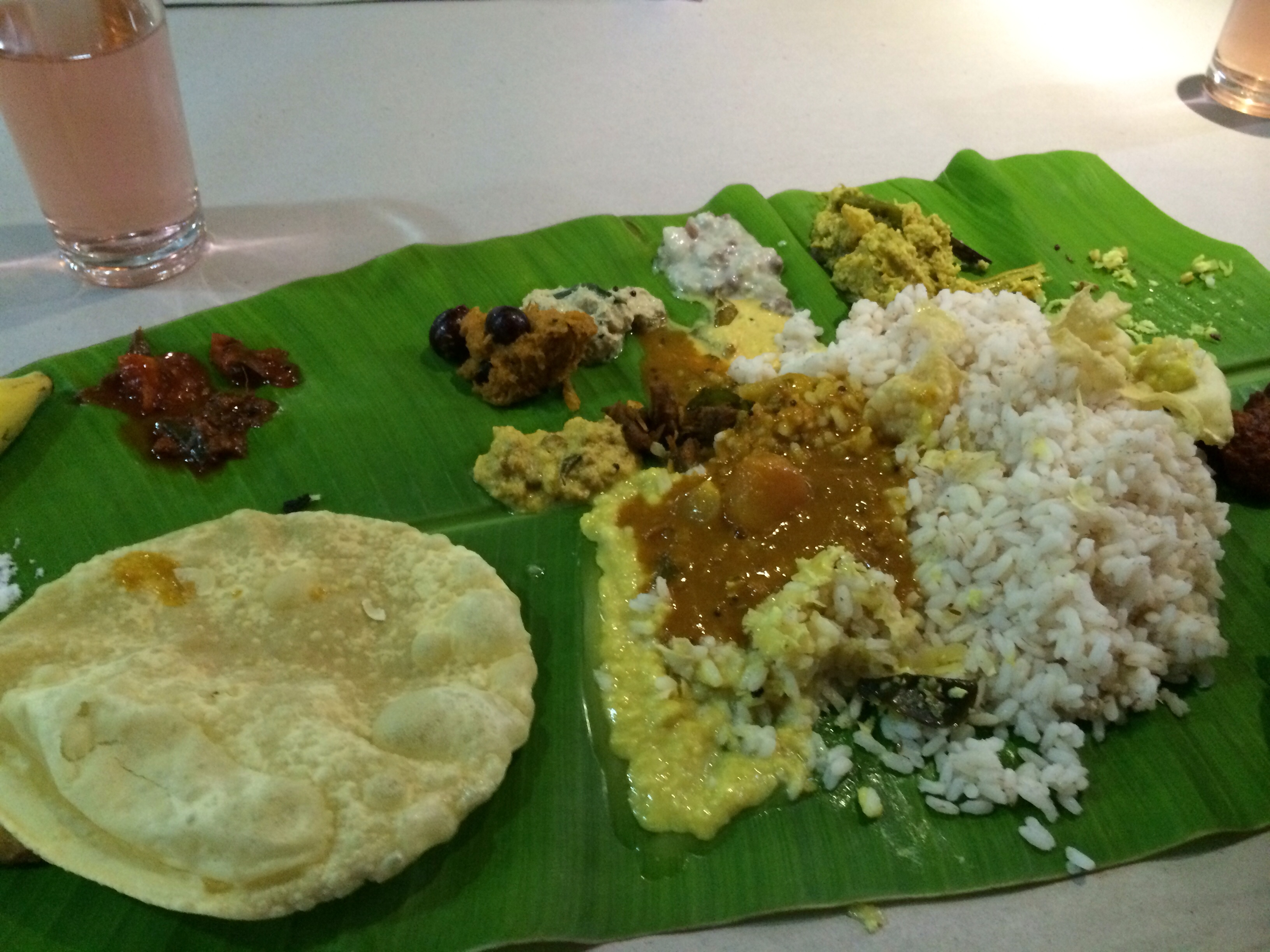 ケララ旅行での楽しみの一つは、ミールスを赤米で食べること。