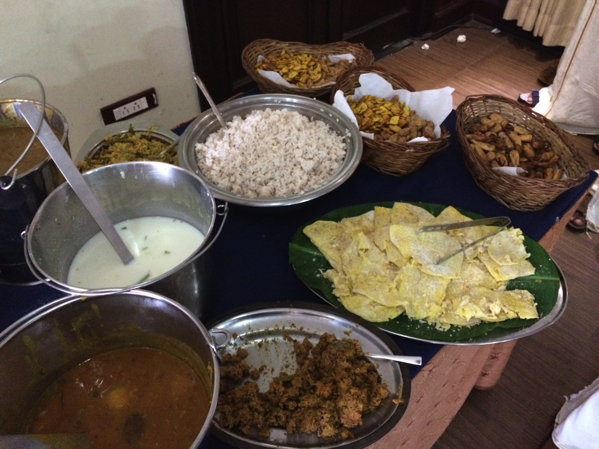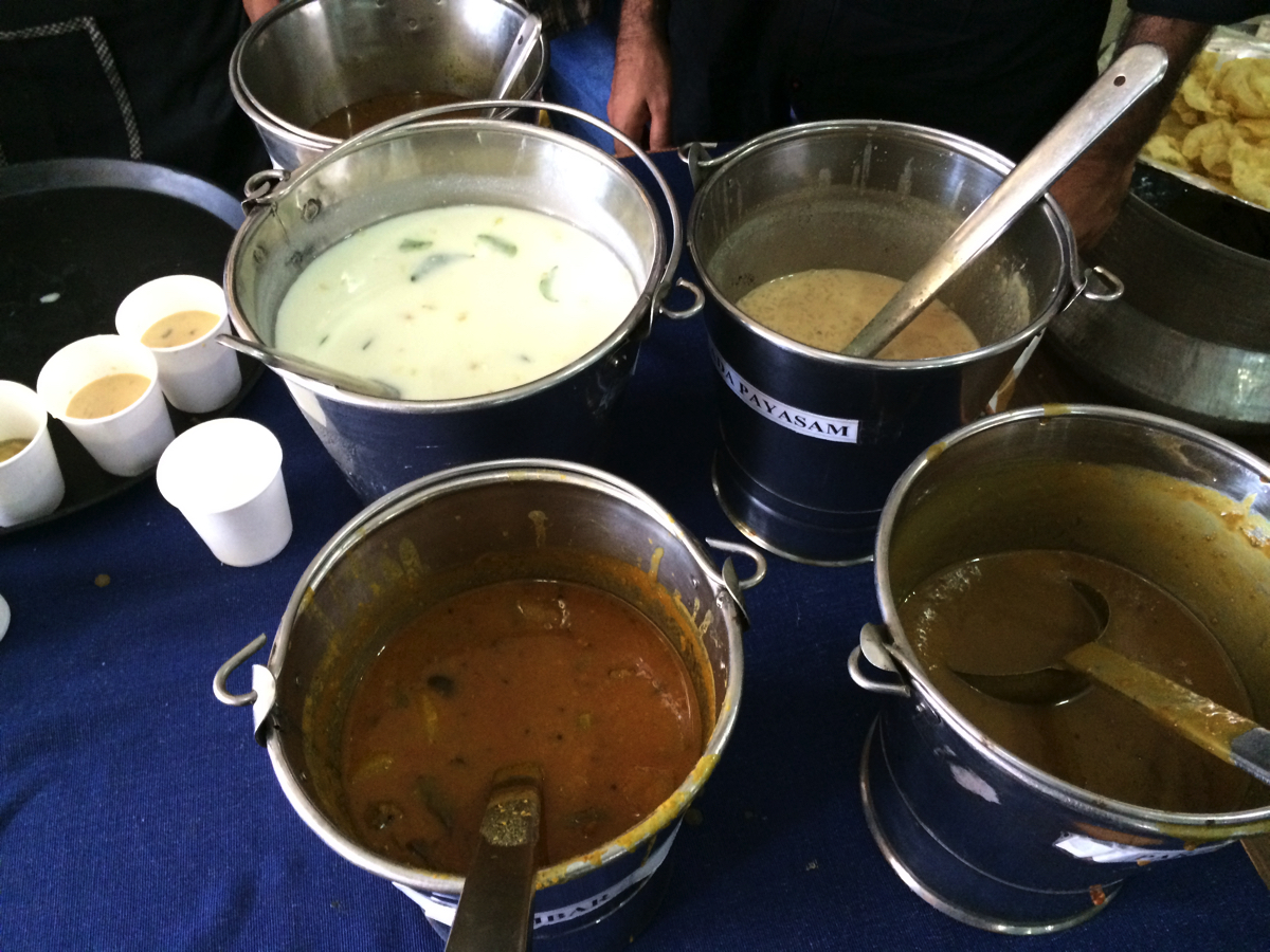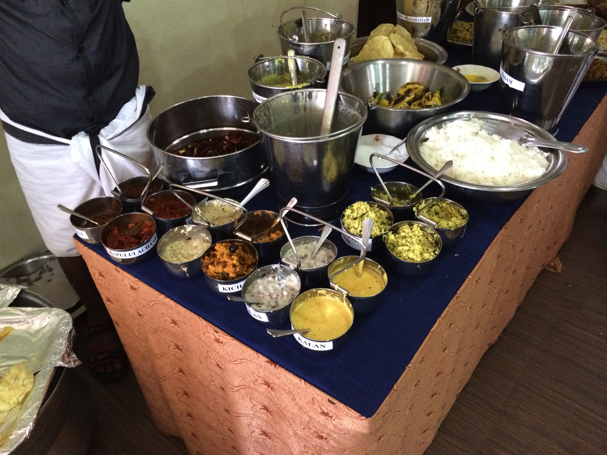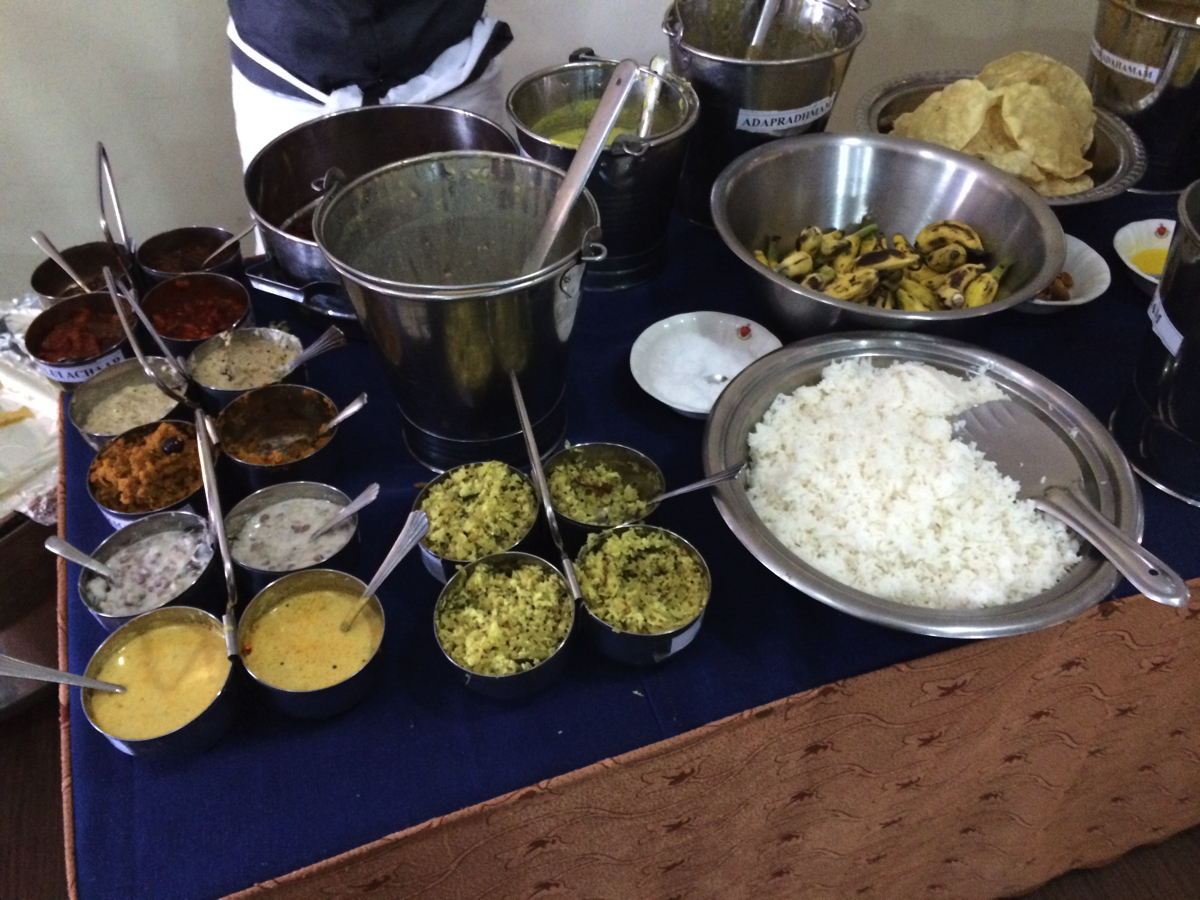 Rasamはなかったのですが、SambarやKootu(これは葡萄でした。デラウェアみたいな種無し葡萄。これも印象的!だって帰国後1ヶ月近くになっても覚えているのですから(笑))、Avialを混ぜて混ぜて、モリモリこれでもか!?というくらいMatta Riceをいただきました。