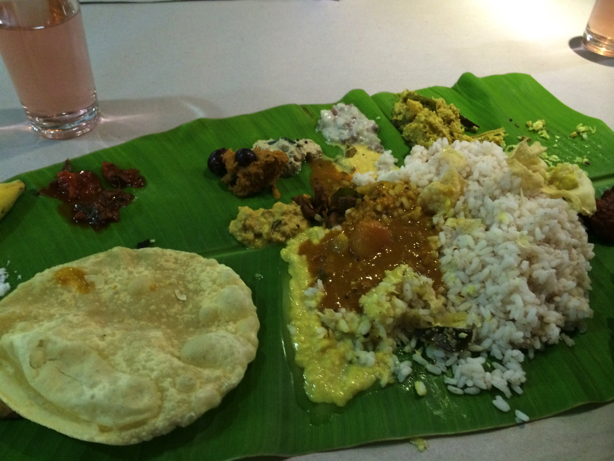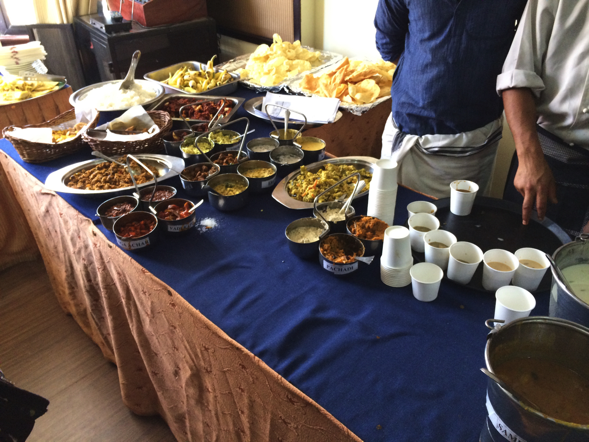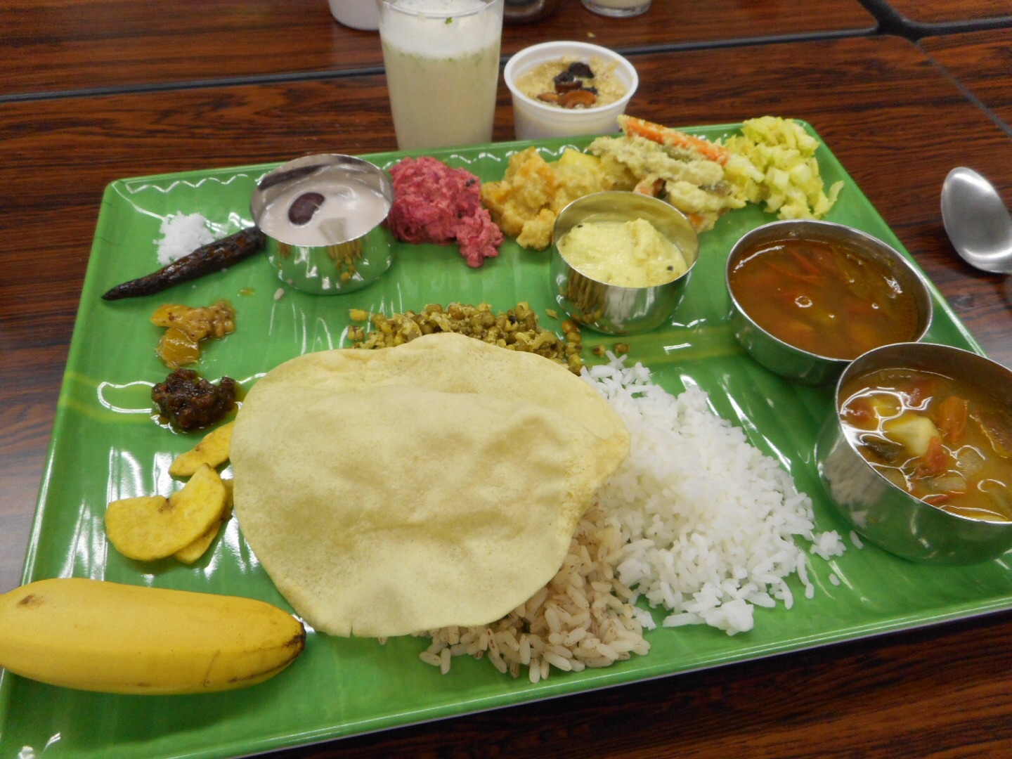 Rasamはなかったのですが、SambarやKootu(これは葡萄でした。デラウェアみたいな種無し葡萄。これも印象的!だって帰国後1ヶ月近くになっても覚えているのですから(笑))、Avialを混ぜて混ぜて、モリモリこれでもか!?というくらいMatta Riceをいただきました。