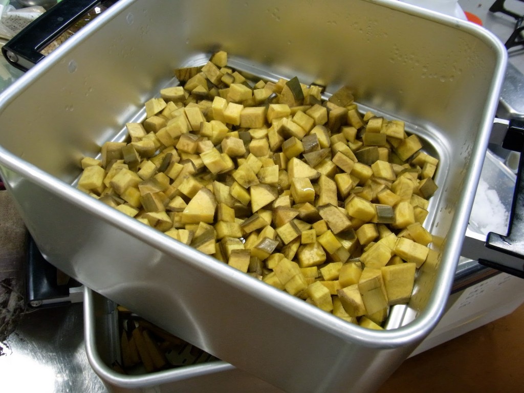 皮つきのプランテンをさいの目切りし、蒸しました。