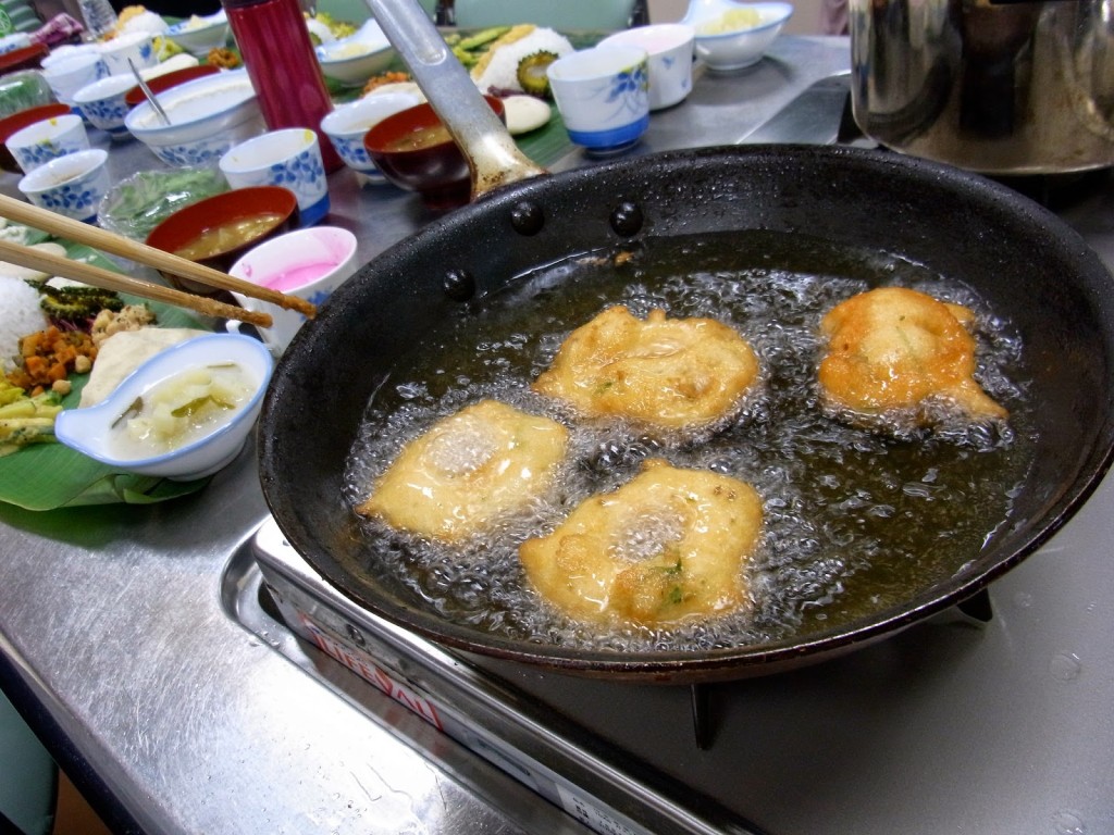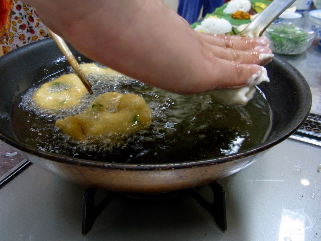 メドゥ・ワダも参加していただいた方に大部分揚げて頂きました。中には、クミンシード・香菜・ブラックペッパーホール・ヒング・塩を入れました。