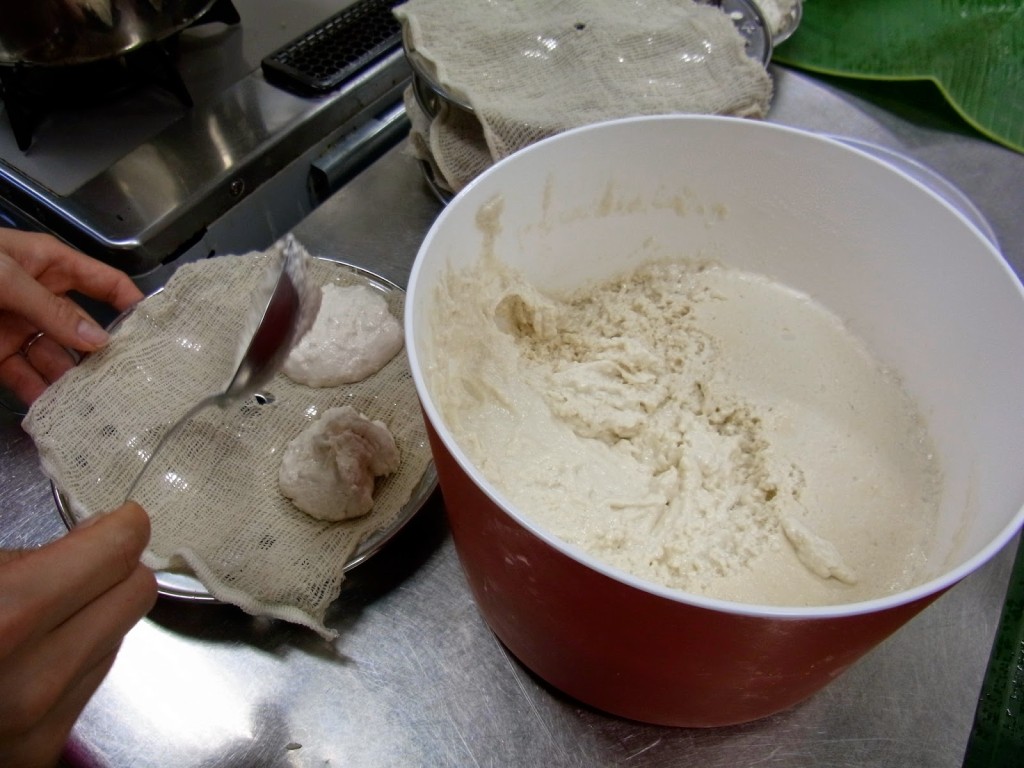 その生地を、イドゥリプレートに乗せて、蒸し上げます。