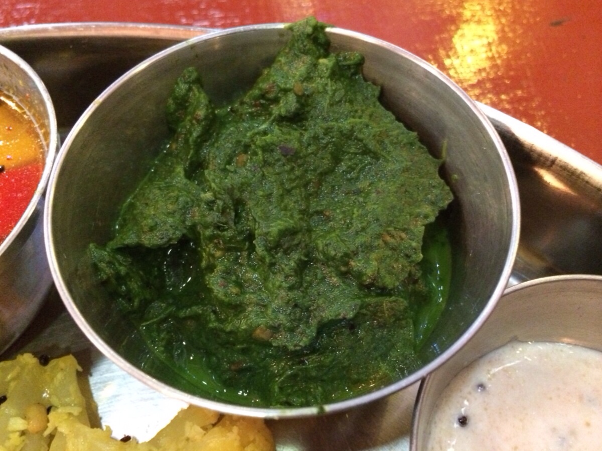 ミールスのうち、週替わりの料理は緑色が鮮やかな「Keerai Masiyal」