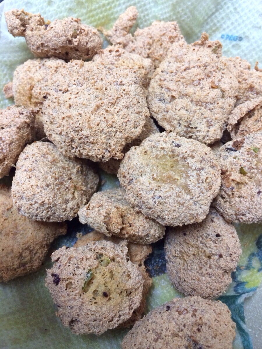 揚がった高野豆腐、クルマのペーストはそれぞれの味付けの塩梅はいいかと思ったのですが結果は塩っぱくなってしまいました。