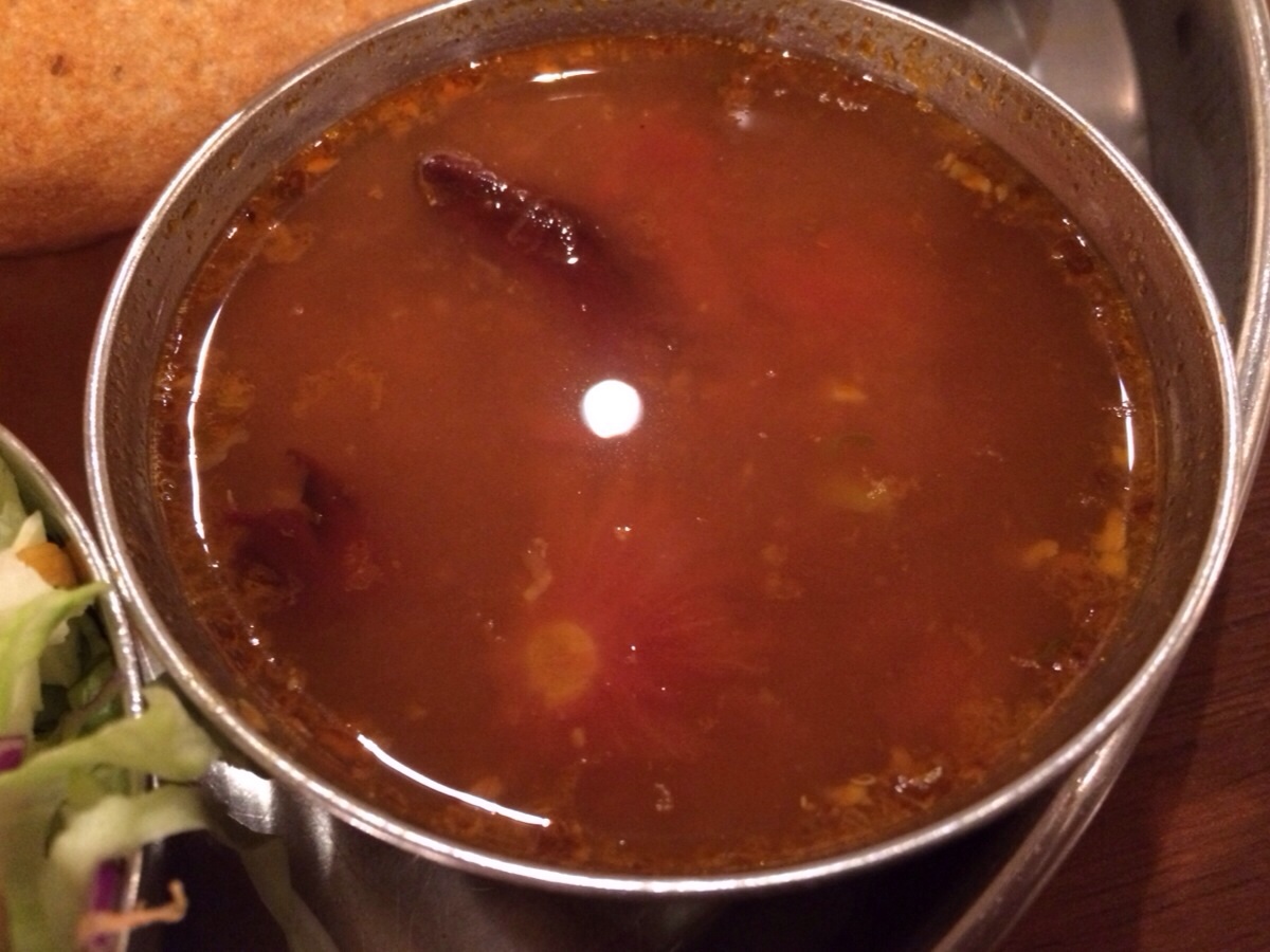 そんなこんながありましたが、〆にサンバルをライスにかけ一口も手を付けなかったパパドを振りかけ、ラッサムを口直しにしつつ一粒残らず最後の一杯のバスマティライスを完食しました。