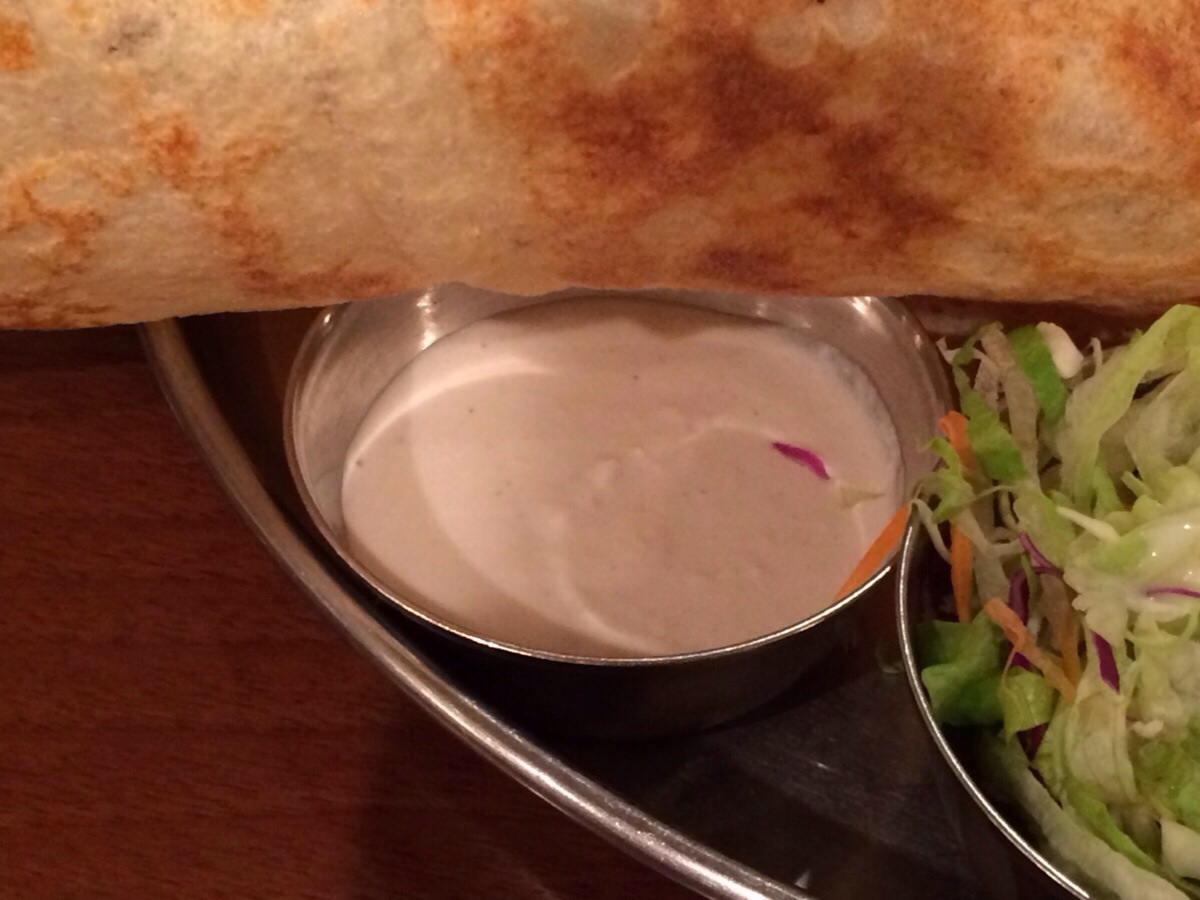 外はパリっとした肉厚のドーサです。