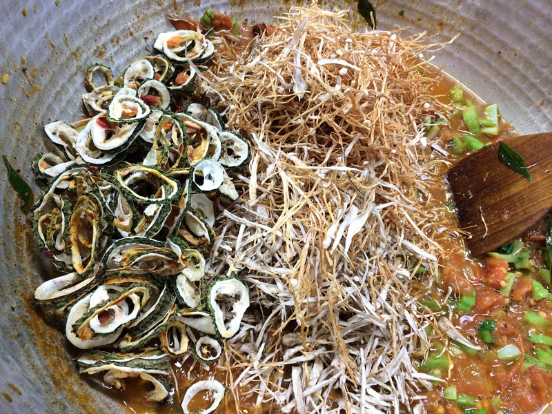 写真左側の上から二品目が干し柿のバジ(ベスン粉を衣にした天麩羅のようなもの)です。