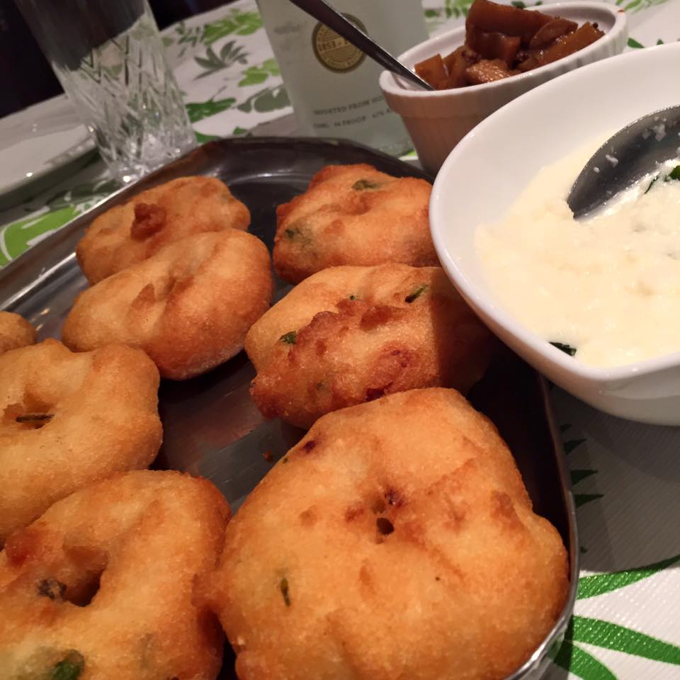 まずは、N-jiriさんのつくるフワフワのメドゥ・ワダと柚子香るココナッツチャトニ。