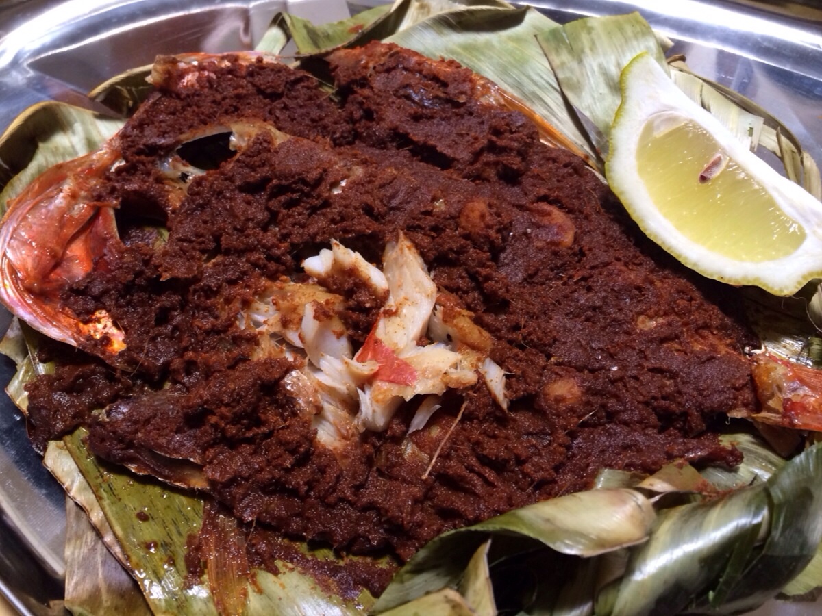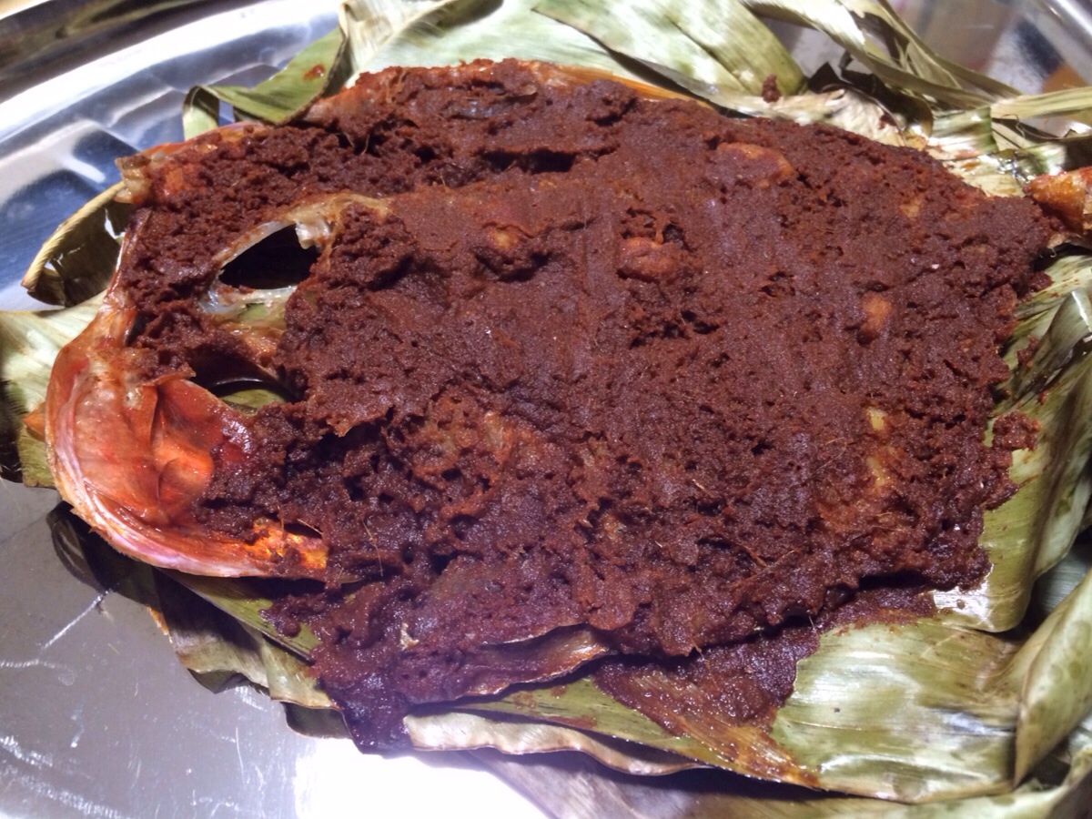 バナナの葉に包んで、蒸し焼きしました。いや、正確には大きい鍋に魚を包んだバナナの葉を入れ、蓋をして蒸し焼きにしたものです。