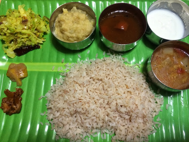 今日の晩御飯は、ケララの赤米を茹でるつもりでサンバル、ラッサム、クートゥ、トーレンの簡単ミールスを作りました。