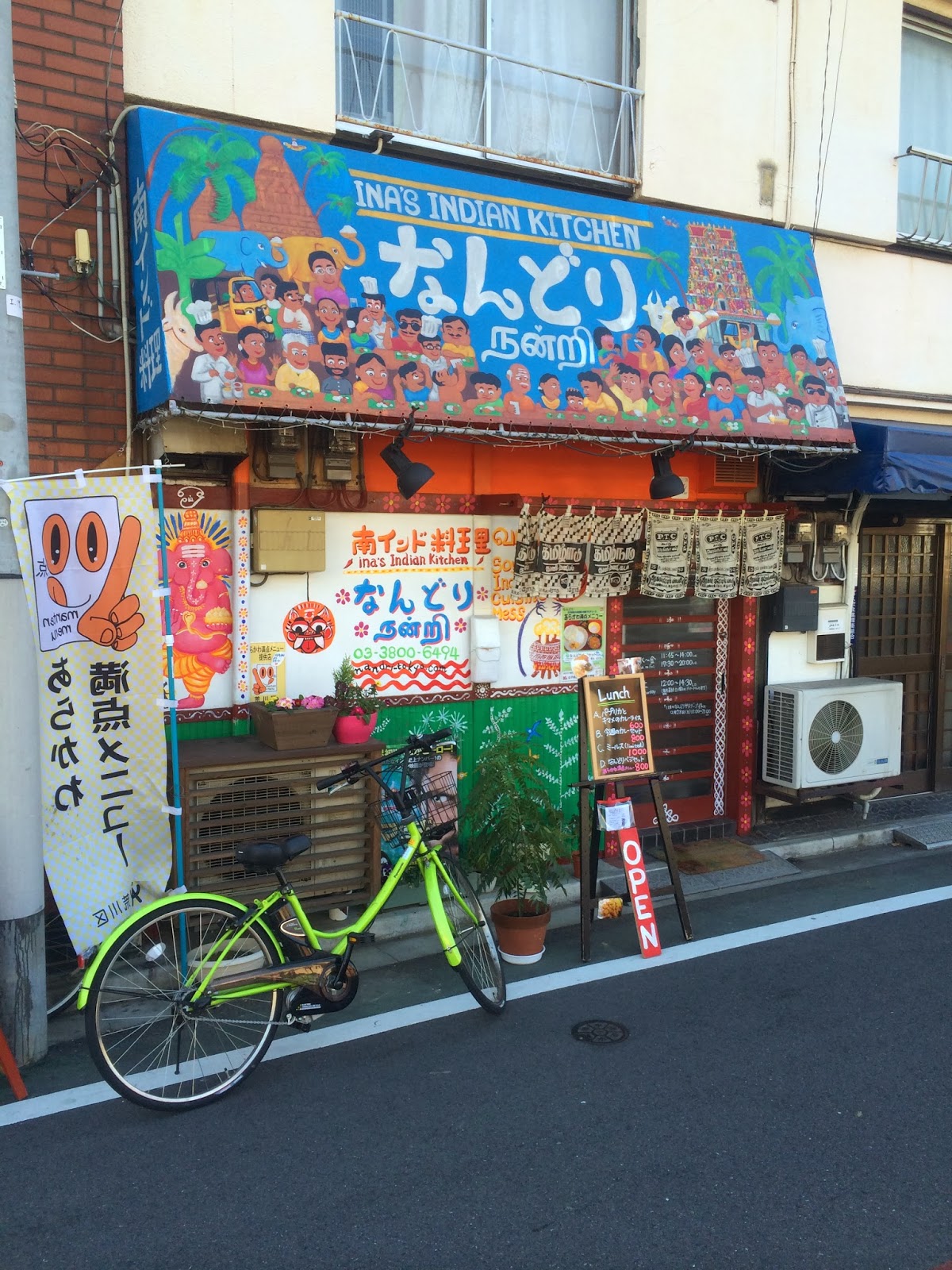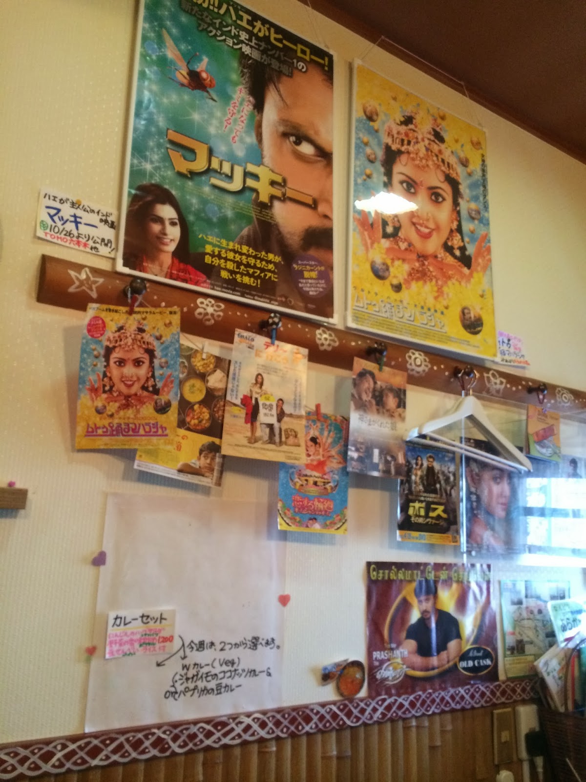 | 店内はインド映画のポスターが所狭しと並んでいます。 店内の写真をパチリパチリと撮影している間にミールスが運ばれてきました。 |