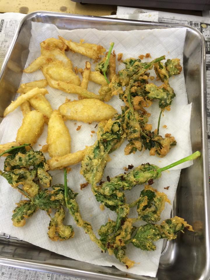 5.独活のバジ(スパイス入り豆の粉を付けて揚げた天麩羅)