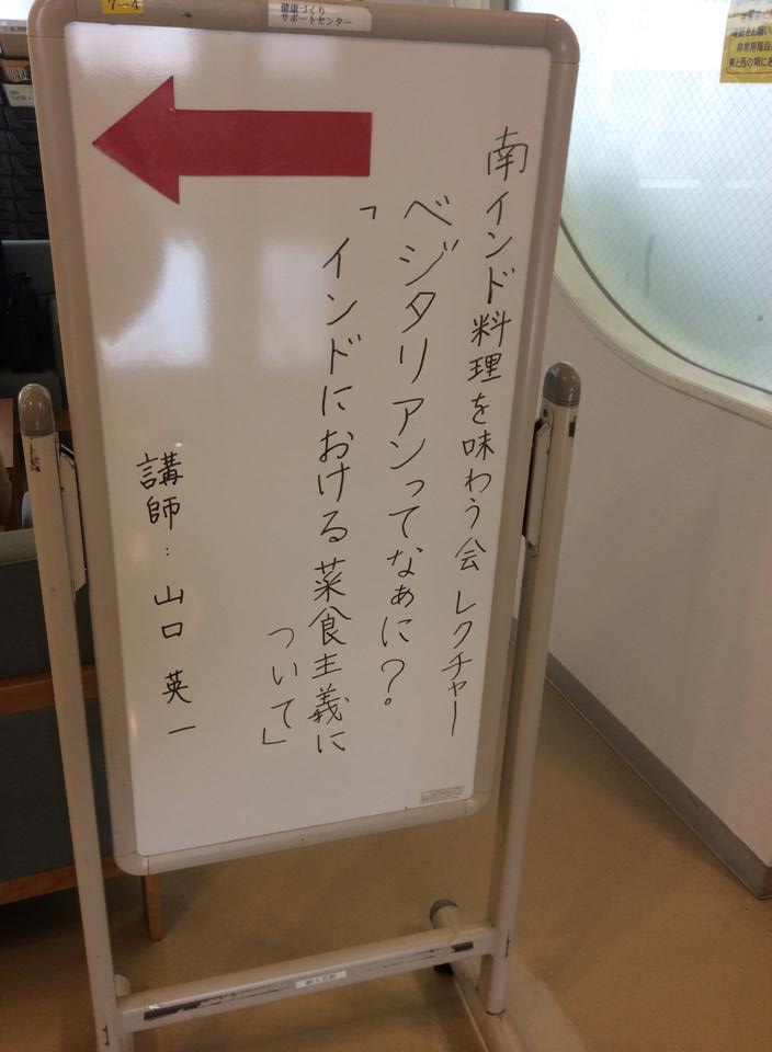 南インド料理のベジ食事会が付いている?講義ですが、インド全体の食事についてクイズ形式を取り入れたり、ふんだんな写真や様々な統計などを取り入れてわかりやすく、親しみやすい講義内容になったようでした。