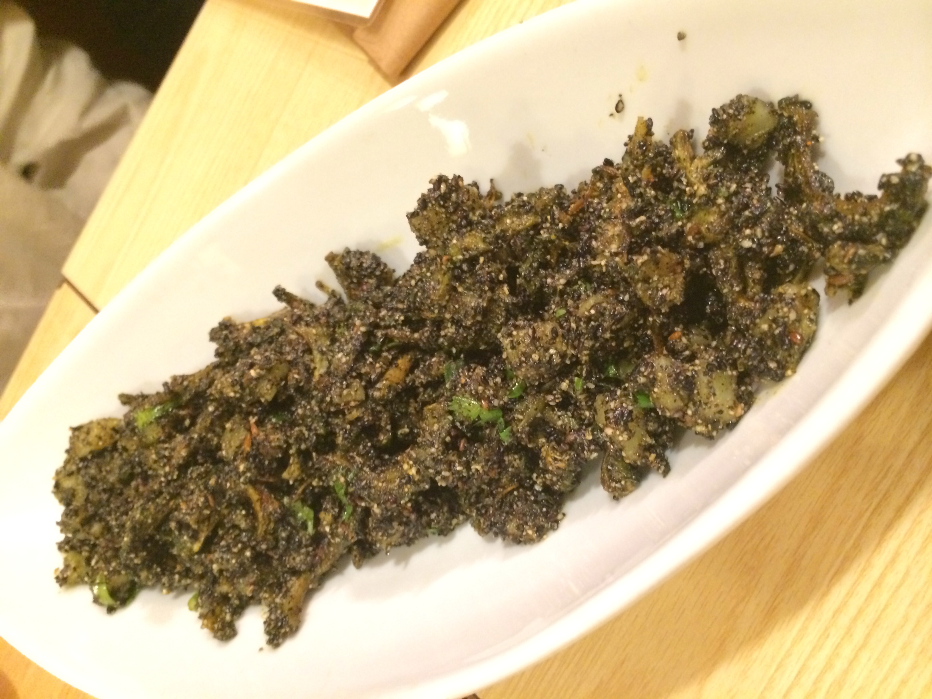自家製のグンドゥルック(青菜を干して乾燥させ、発酵させたもの)のアチャール。まどかオーナーの一押しのようです。そのアチャールに入った大豆の噛みごたえというかカリカリ感もたまりません。