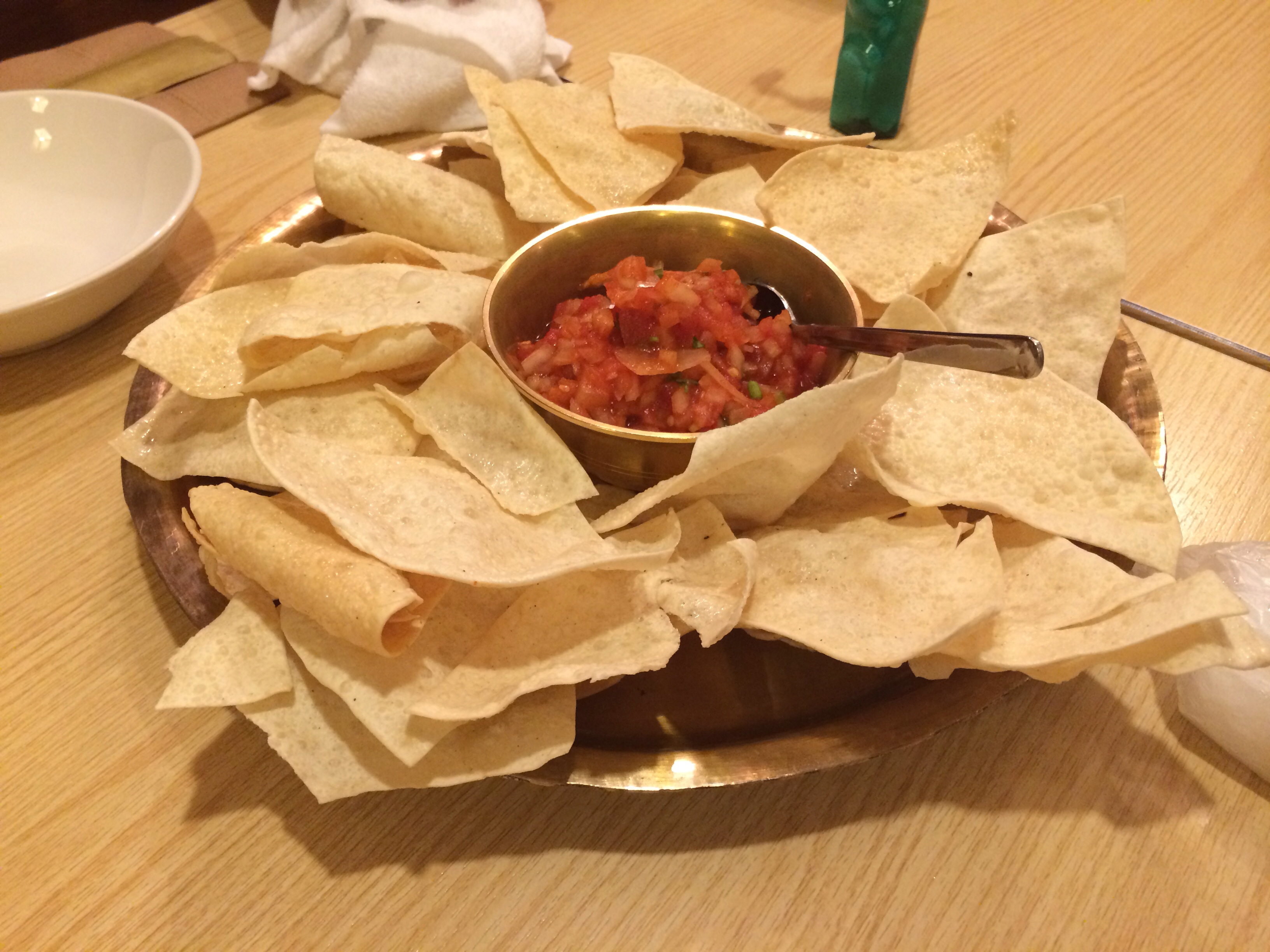 サクサクパパドにぴりっと辛みの効いたアチャールが、たまらなく美味しい。