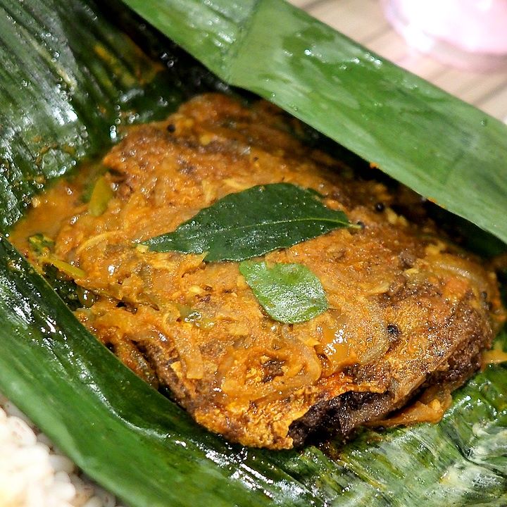 Fish ilayil pollichathu(魚のバナナ葉包み焼き)