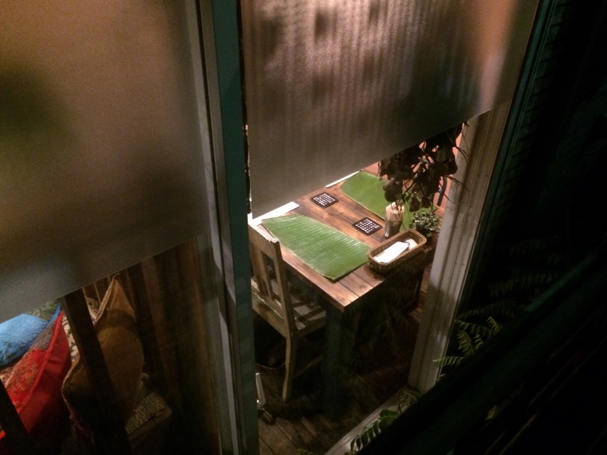 全てのテーブルにはきれいなバナナリーフが敷かれています。