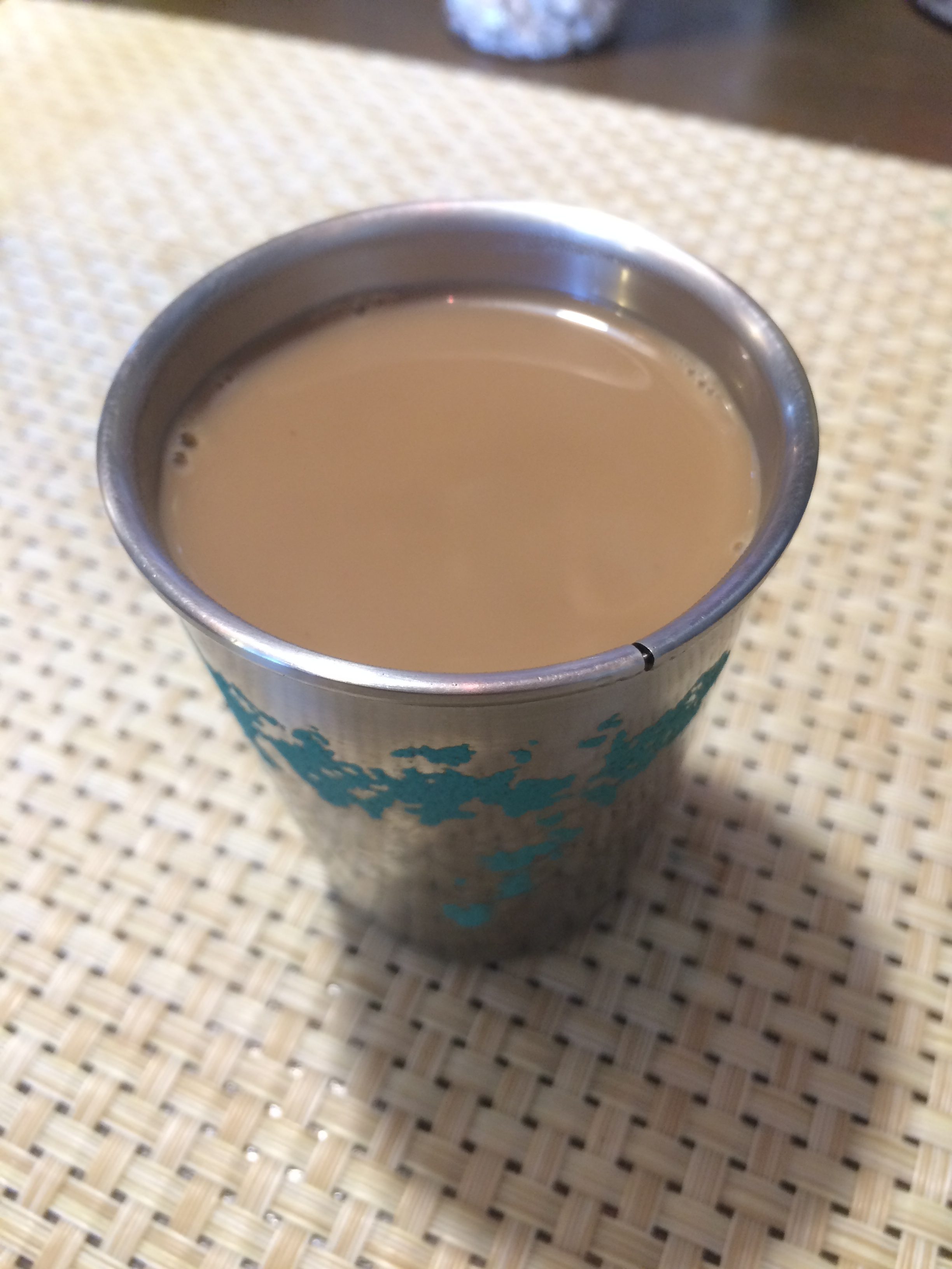 このチャイカップは、二層になっていてチャイを飲むときグラスが傾くと層の間に入っているもの後動いてカラカラ音がします。
