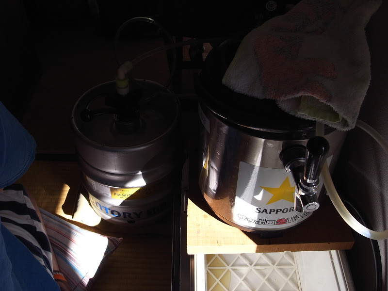プレモルのビールサーバーを、近所の酒屋さんが運んできましてセッティング完了!