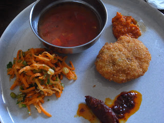 | 前菜はワンプレーとで・・・嘘(^^ゞ ワカサギのアチャール・ラッサム・コサンマリ・カツレツ |