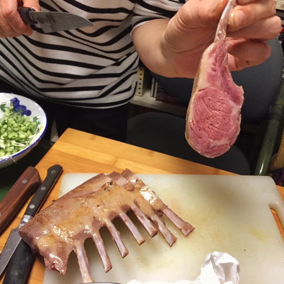 2.ラムチョップのカレーリーフポディ添え(柔らかく調理したニュージーランド産ラムチョップにカレーリーフのポディを振りかけました。カレーリーフの清涼感とラム肉の食感は個人的によく合うと思いますので、こねくり回すよりもシンプルな味もいいかな?と思い提供しました。)