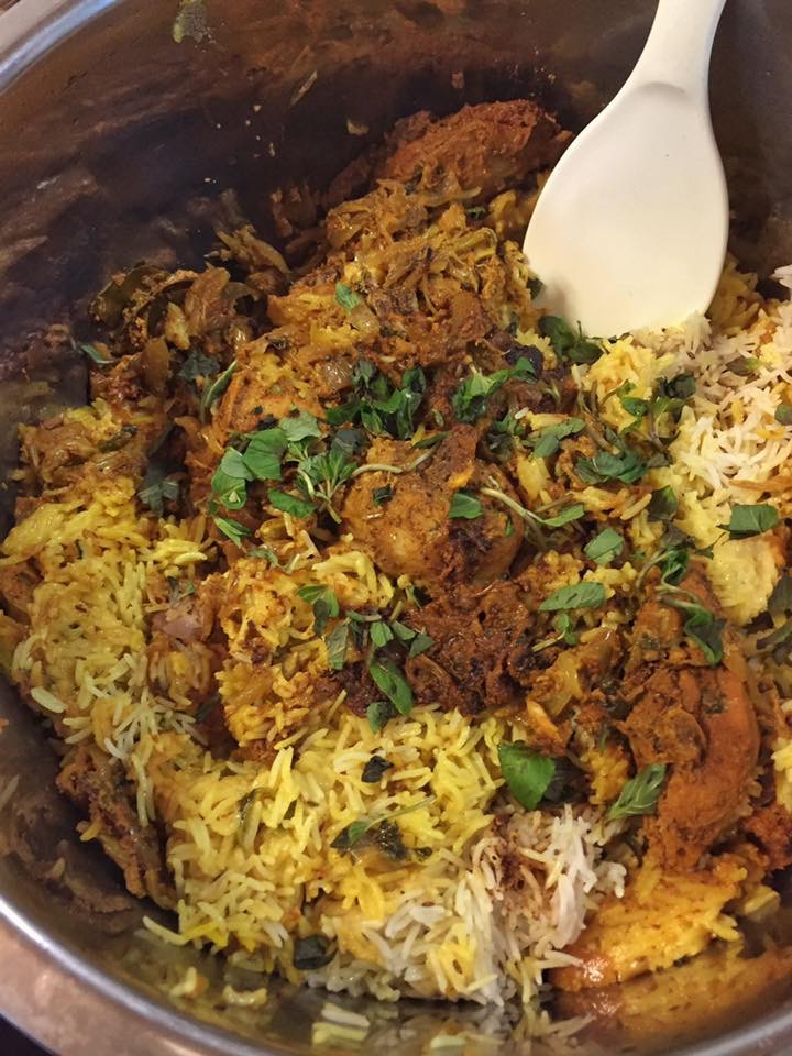 10.チキンビリヤニ(日南鶏の骨付き腿肉を使用してのハイデラバーディ・カッチビリヤニを作りました。カッチとは”生肉”を使用しての調理法です。前日よりいろいろなスパイス、ヨーグルトと鶏肉をマリネしました。当日は反茹でのバスマティライスの下に鶏肉マリネを敷き、調理したのですが・・・w鶏肉に触れた箇所のバスマティライスが緩くなってしまいました。(T_T) 他所でチキンビリヤニを作って上手くできた時の分量で作ったにもかかわらず・・・やってしまいました。水分量は凡そ同じだと思うのですが、鶏肉に含まれる水分が多かったのかもしれません。次回からはヨーグルト等水分控えめで作ります。もしくはカッチタイプを止めるかも。。。