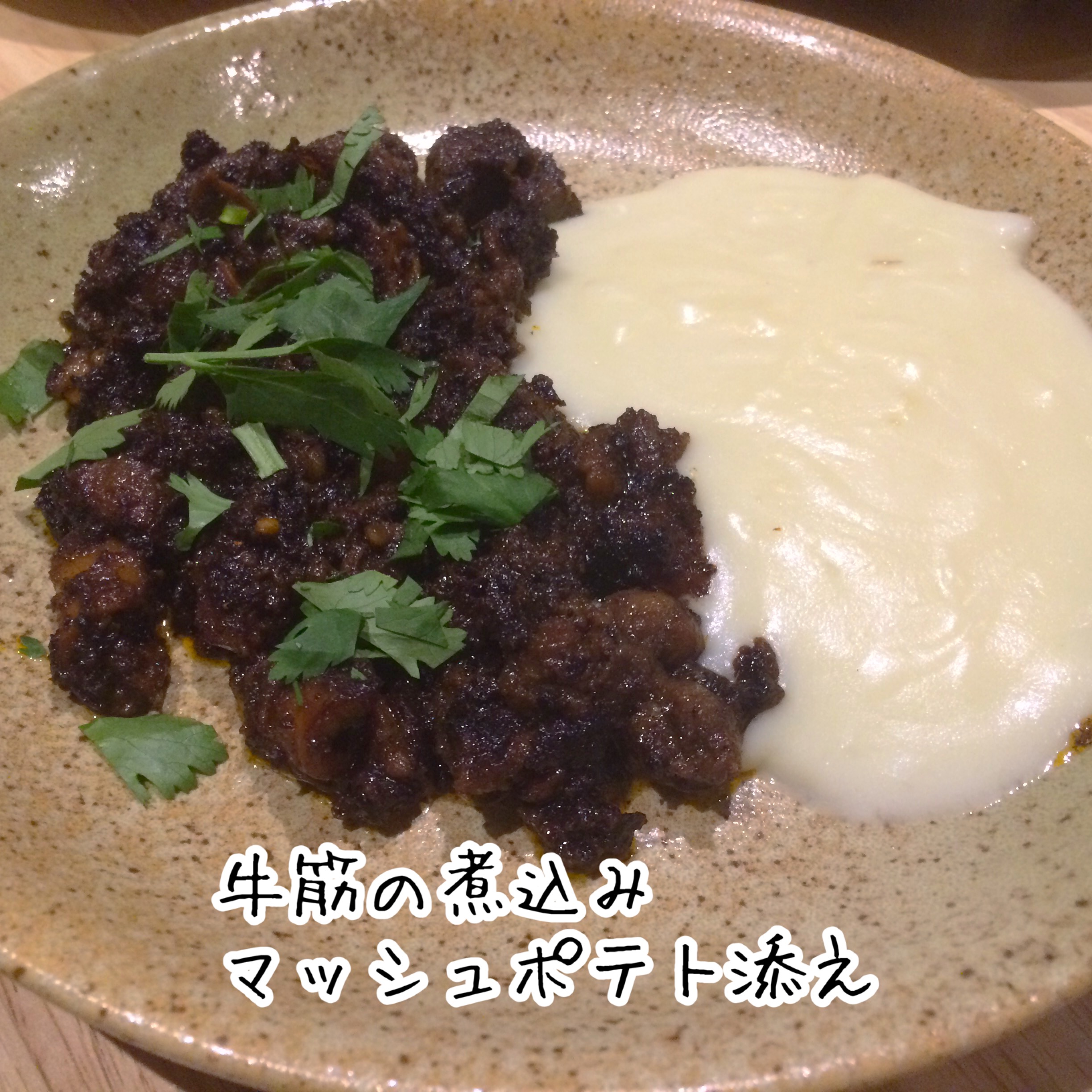 個人的にはもう少し辛い方が好みですが、優しい味のマッシュポテトの衣を被った豚ではなく牛筋の煮込みは、口の中でとろけてしまいます。