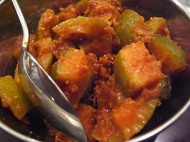 皮の部分がコリコリしていて、すんげー美味しい。一見辛そうに見えますが、そんなに辛くはないので是非ケララの風Ⅱでこのアチャールを食べてもらいたい。