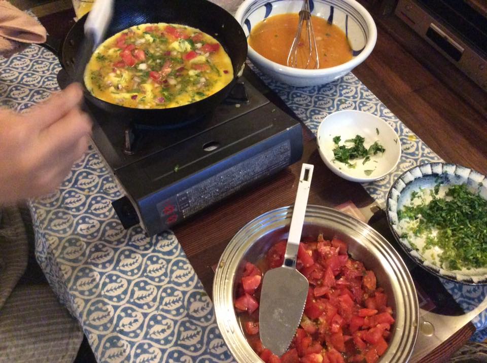 参加者と一緒に楽しもう!ということでマサラオムレツ用の材料を用意したので、勝手に焼いてよマサラオムレツ!です。