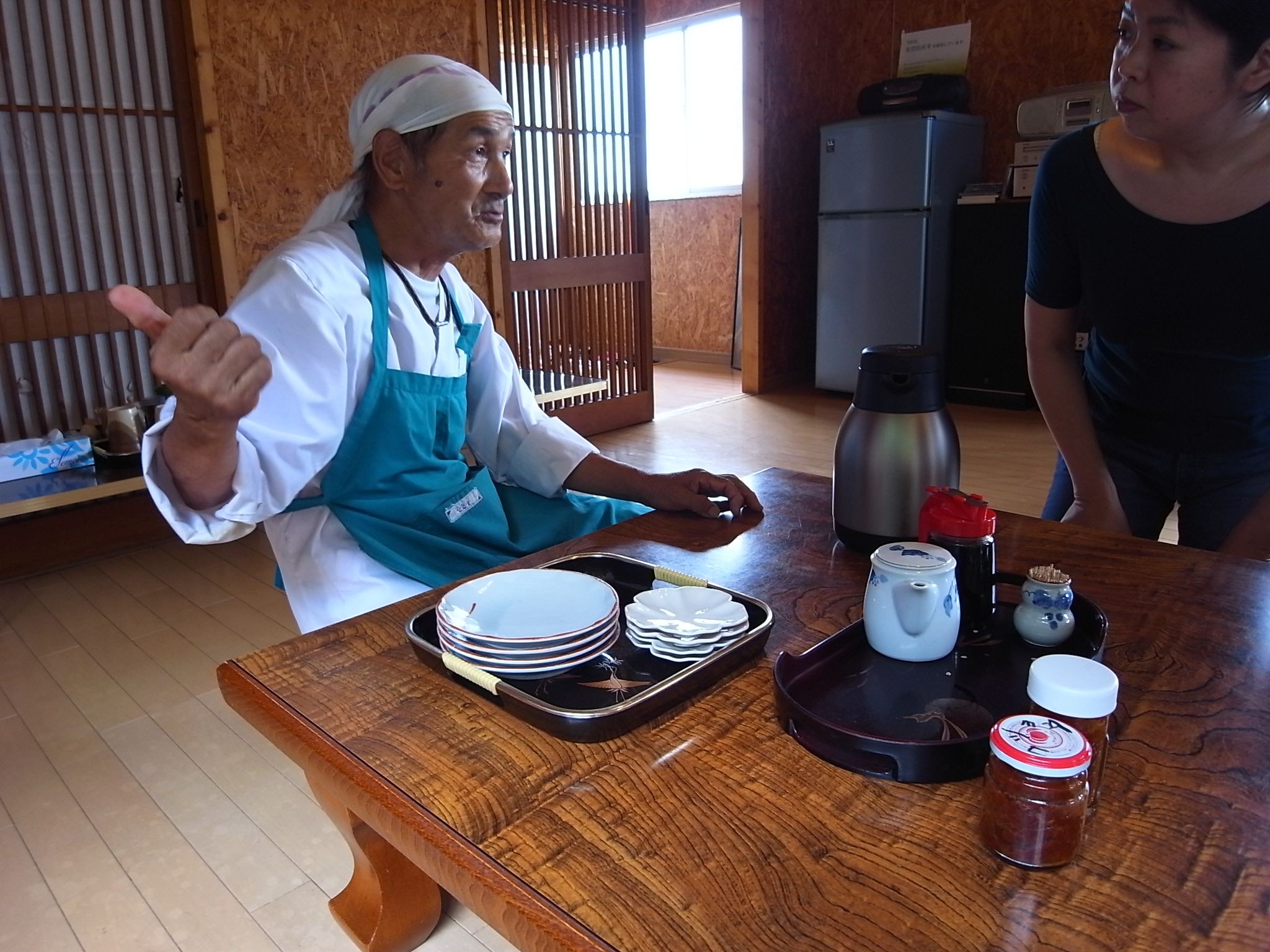 階段で足早に降りた吉田さん。でも、すぐに上がってきて食事のながれなどの説明が始まりました。