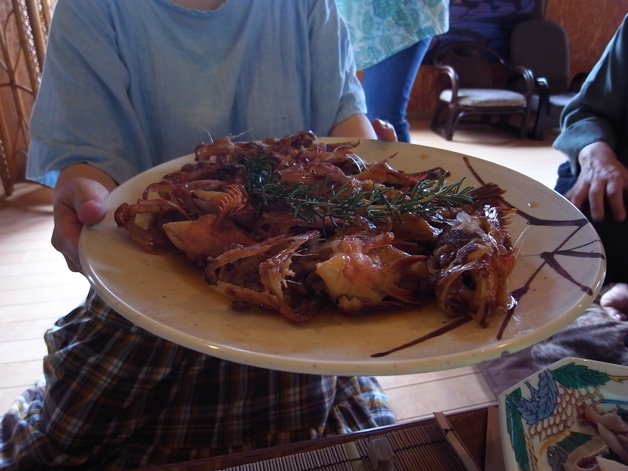 皆さん骨を手に取って身をしゃぶりとっていました。